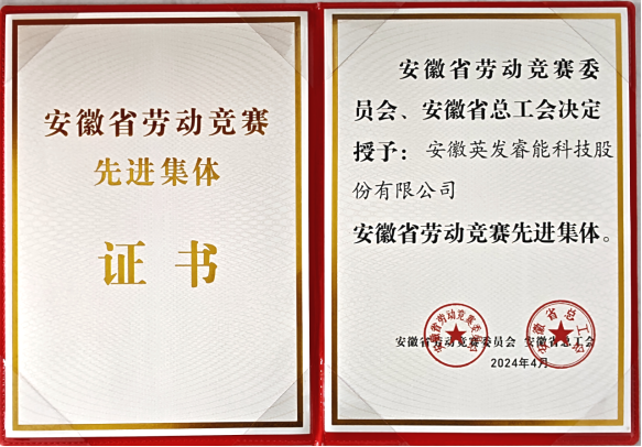 近日,安徽省总工会发布《关于表彰2023年度安徽省劳动竞赛先进集体、先进个人和安徽省五一劳动奖、工人先锋号的决定》,对2023年度安徽省劳动竞赛先进集体、先进个人和安徽省五一劳动奖、工人先锋号给予表彰。安徽英发睿能科技股份有限公司荣获“安徽省劳动竞赛先进集体”荣誉称号。